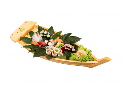 Sushi si můžete odnést na dřevěné lodičce. Ovšem potřebujeme zálohu.